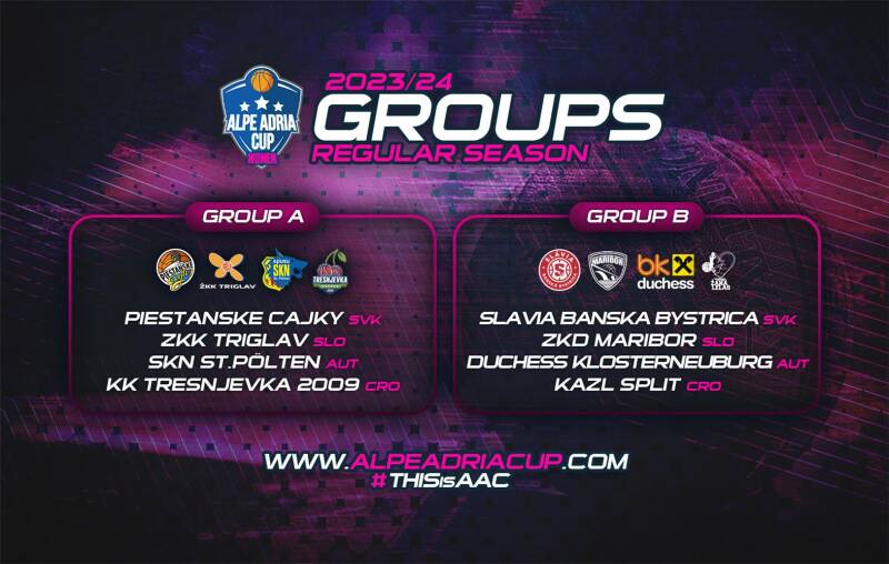 Wien, 13.7.2023 - Die Gruppen für den Alpe Adria Cup der Frauen 2023/24 stehen fest. Meister BK Raiffeisen Duchess und Newcomer SKN St. Pölten Basketball vertreten Österreich.