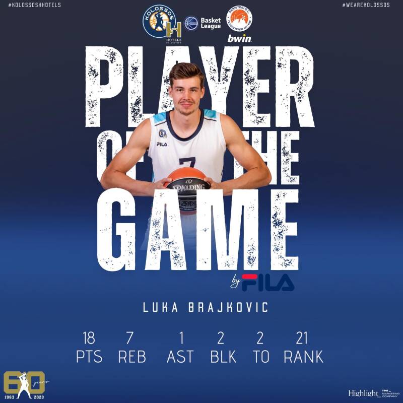 Brajkovic zeigte sich gegen den mit EuoLeague- und NBA-Erfahrung gespickten Gegner vom Start bis zum Ende hellwach. Bei noch 5:14 Minuten auf der Spieluhr sorgte er per Dunk für das 69:66, auch das 71:70 bei 2:42 Minuten Restspielzeit ging auf sein Konto. Zudem war „Big Luka“ der am öftesten gefoulte Spieler im Kolossos-Dress.