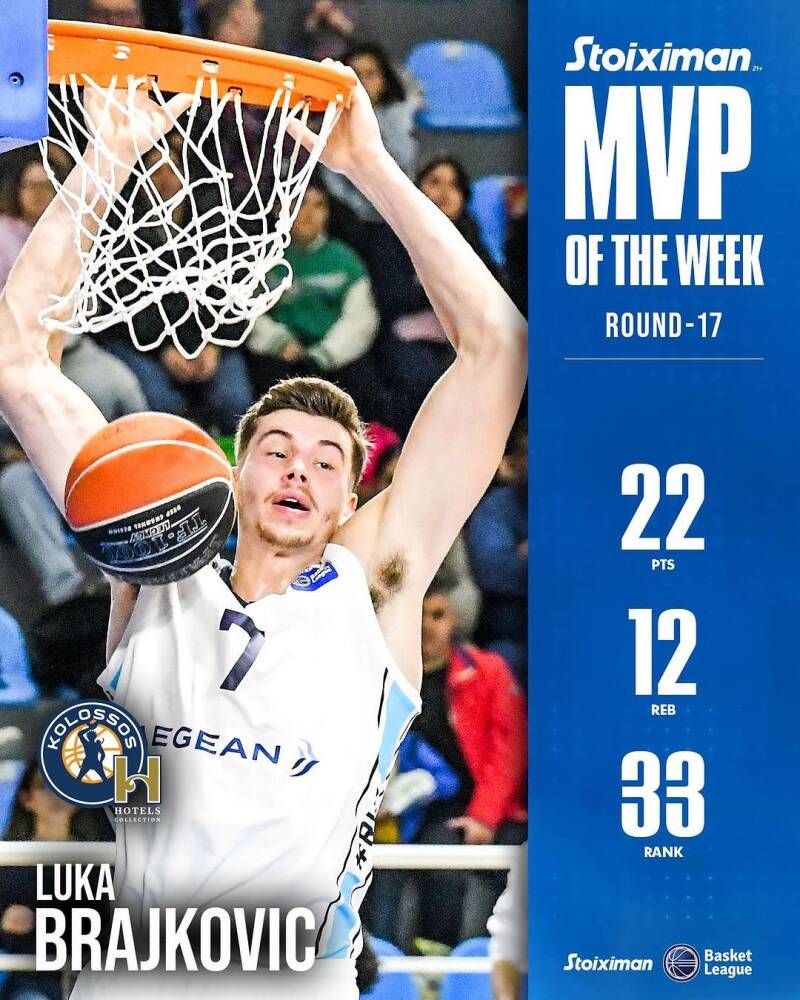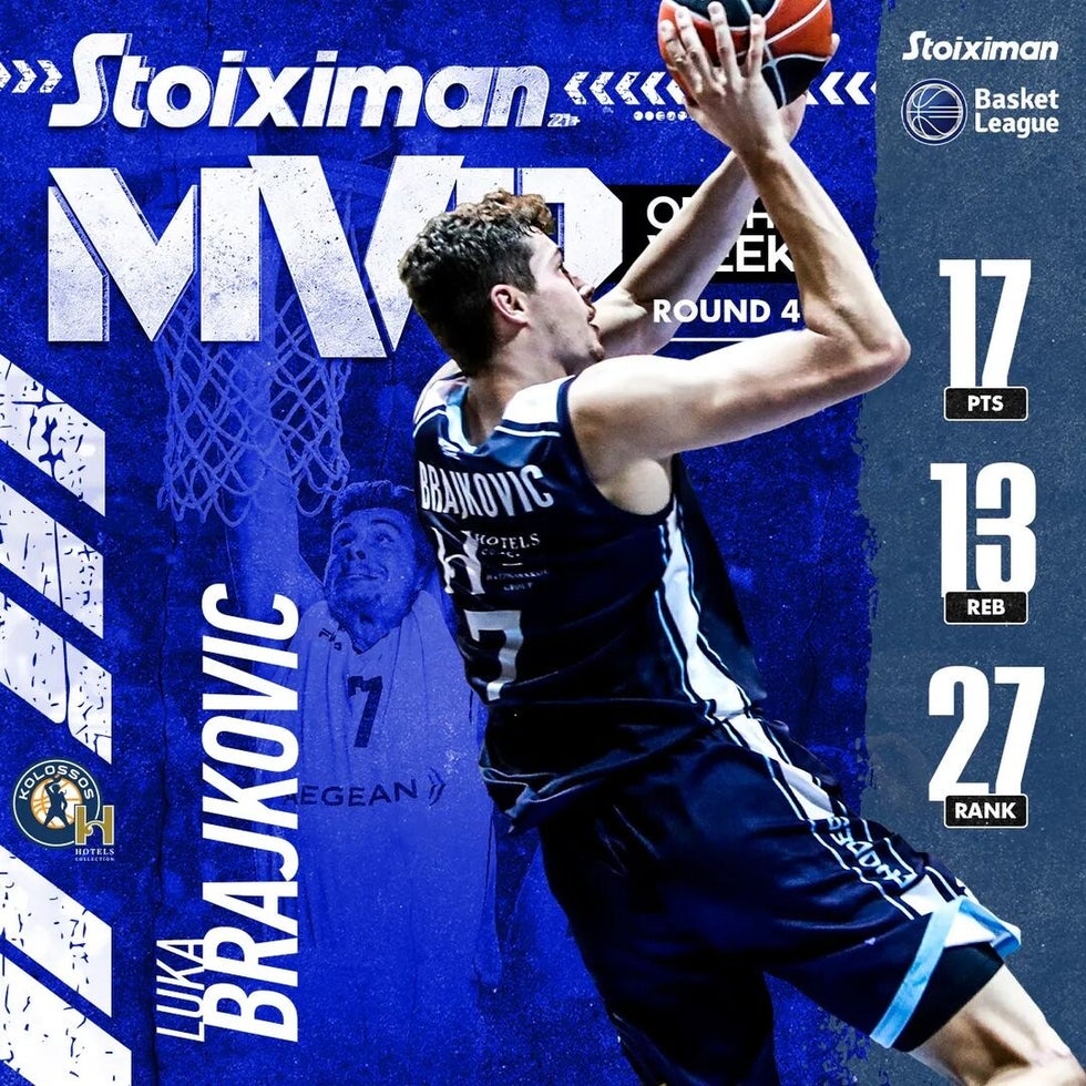 20 Punkte und 14 Rebounds von Luka Brajkovic beim 69:60-Auswärtssieg von Kolossos Rhodos gegen Aris Saloniki.
